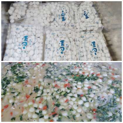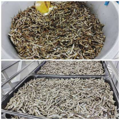 「ごまめ」は、おせち料理の一品で、五穀豊穣を願って食べます。焼き物機で香ばしく焼き、甘辛いタレをからめています。