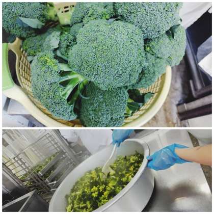 「ブロッコリーとコーンのサラダ」は、焼き物機で蒸したコーンと冬が旬のブロッコリー に、砂糖、塩、米酢、うすくちしょうゆ、綿実油を合わせたドレッシングをかけあえます。