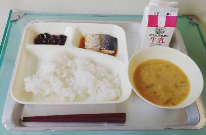 さごしのしょうゆだれかけ・みそ汁・黒豆の煮もの