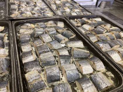 「さごしのしょうゆだれかけ」は、塩で下味をつけたさごしに、料理酒、みりん、こいくちしょうゆを合わせたタレをかけます。さごしは、小学校50g、となっています。