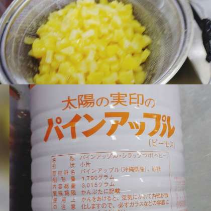 「パインアップル(カット缶)」は小学校では、一人1/40缶です。