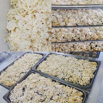「焼きれんこん」は、塩と綿実油で下味をつけた冬野菜のれんこんを、焼き物機で焼きます。