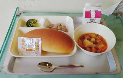 「ウインナーと野菜のケチャップ煮」は、ウインナーを主材に、じゃがいも、たまねぎ、キャベツ、にんじん、青みにグリンピースを使用し、ケチャップ、チキンブイヨンなどで味つけした煮物です。