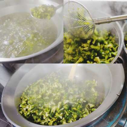 「ブロッコリーのサラダ」は、ゆでたブロッコリーに、砂糖、塩、ワインビネガー、うすくちしょうゆ、オリーブ油を合わせたドレッシングをかけてあえています。