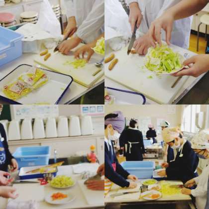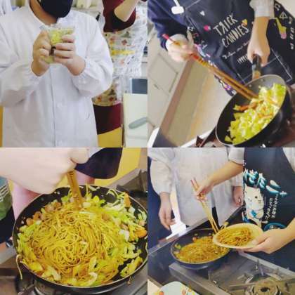 野菜の切り方や、炒め方を色々なやり方をしていました。野菜の切り方を工夫したり、麵をほぐしたりしました。