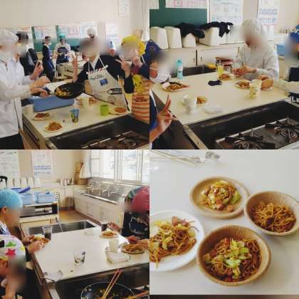 味が薄味の班・屋台の焼きそば風の班・手際の良い班・麵にお水を入れている班などがありました。