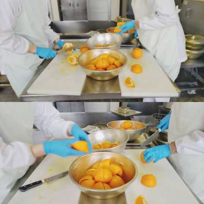 「デコポン」は、小学校、1人1/4切ずつつきます。
