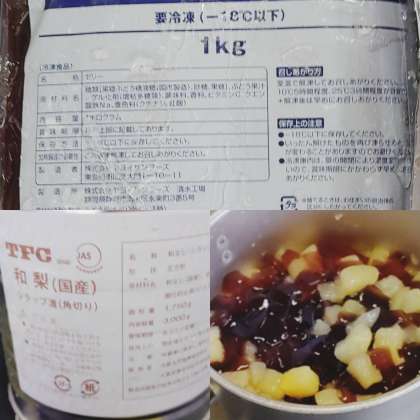 デザートは、ゼリー(ぶどう)と和なし(カット缶)を合わせた「フルーツゼリー」となっています。