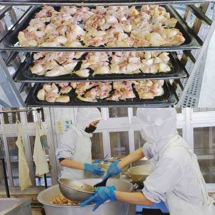 「鶏肉のみそバターソース」は、鶏肉に料理酒で下味をつけて焼いたものに、八丁みそやバターを使用したソースをかけています。