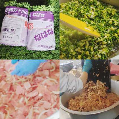 「なのはなのおひたし」は、一年でこの時期だけ味わうことができるなのはなを、だしをきかせたしょうゆ味の調味液であえ、小袋のかつおぶしをかけていただきます。はくさいを組み合わせることで、なのはなの苦みをおさえ食べやすくなっています。