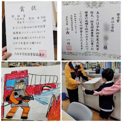 大阪市学校図書館協議会主催の「第40回大阪市読書感想画コンクール」において「奨励賞」に選ばれました。