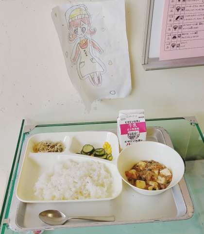 マーボーどうふ・きゅうりとコーンの甘酢あえ・もやしとピーマンのごまいため