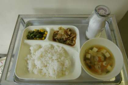 「ホイコウロー」は中国の四川料理の一つで、漢字では「回鍋肉」と書きます。回鍋とは鍋に戻す操作をいうそうです。給食では豚バラ肉をゆでてから、他の材料と一緒に炒めて味付けしています。