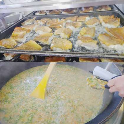 「みそ汁」は、うすあげ、キャベツ、たまねぎ、にんじん、青みに青ねぎを使い、あっさりと仕上げています。