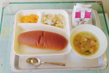 マカロニグラタン・キャベツのスープ・みかん(缶)