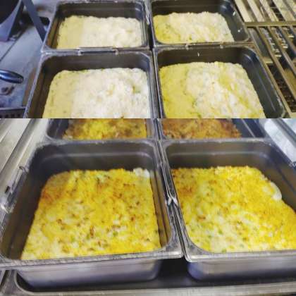 「マカロニグラタン」は、鶏肉を主材にしたグラタンです。クリームを使用することでコクを出しています。