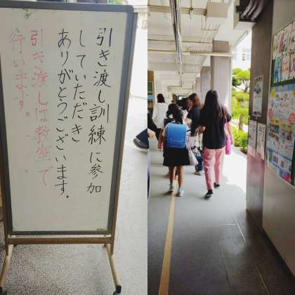いざという時、学校側も保護者も慌てずに行動出来る様に訓練をしました。