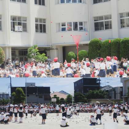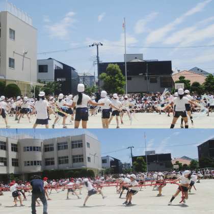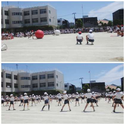 1年生は小学校で初めての運動会です。みんな一生懸命練習をしました。