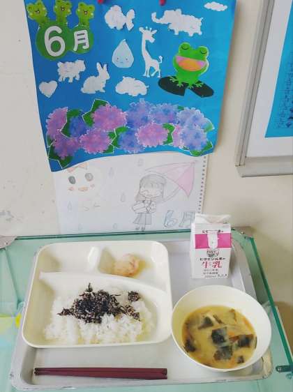 「みそ汁」は、うすあげ、たまねぎ、にんじん、オクラ、えのきたけを使用しています。