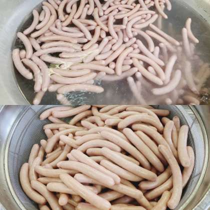「ウインナーのケチャップソース」は、ウインナーソーセージに砂糖、ケチャップ、トンカツソース、ウスターソ ースを合わせて煮、でん紛でとろみをつけたソースをかけます。