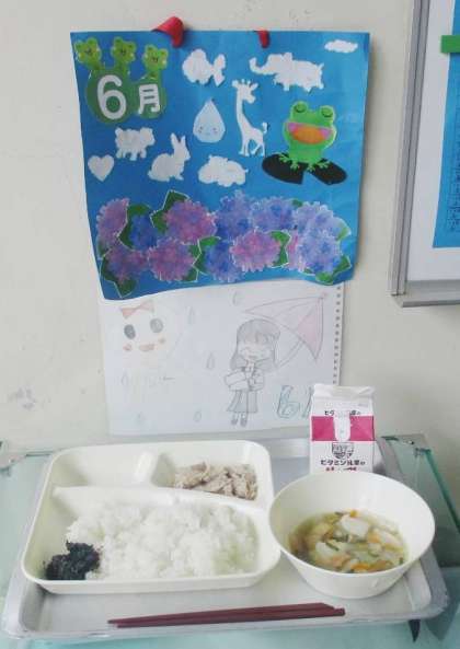 豚肉の甘辛焼き・五目汁・のりのつくだ煮