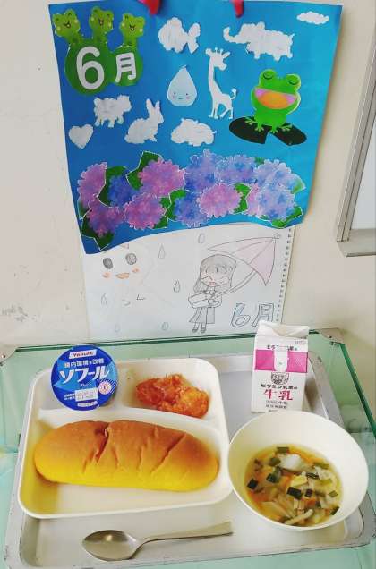 「中華スープ」は、主材に焼き豚を使用し、しいたけで旨みを出し、にらとたけのこで中華らしさを出したスープです。