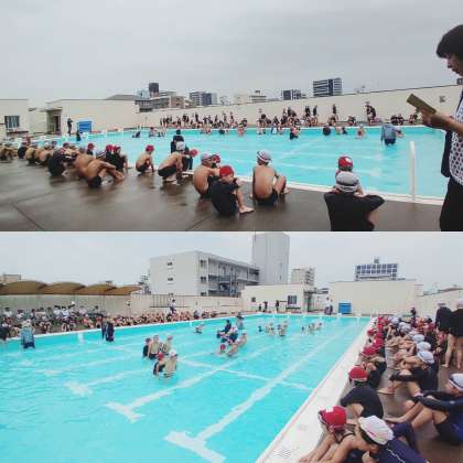 6年生が1年生をしっかりサポートしていました。おんぶして泳いだり、手をつないでプールの授業をしました。