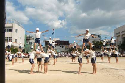 「棒引き」「紅白対抗リレー」「組み立て体操」、とても迫力がありました。