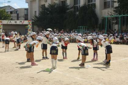 1年生にとっては初めての運動会です。「ようい どん!」「キミに100パーセント」「たまいれ」に出場しました。小学生になってまだ半年ほどですが、すっかり成長した姿がうかがえたと思います。