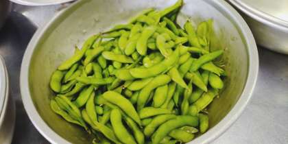 「えだまめ」は、ゆでるか、または焼き物機で蒸して、塩をふり、あえます。