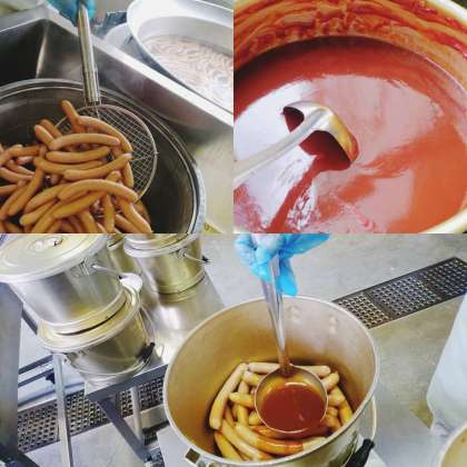 「ウインナーのケチャップソース」は、ゆでたウインナーに、ケチャップ、トンカツソースなどを合わせてでん粉でとろみをつけたソースをかけます。