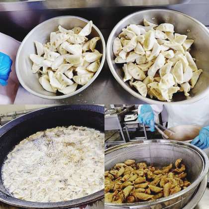 あげぎょうざ・鶏肉ととうがんの中華煮・なし(二十世紀)