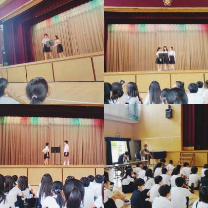 舞台で実際に漫才をしました。コンビとトリオに分かれて、舞台で発表しました。