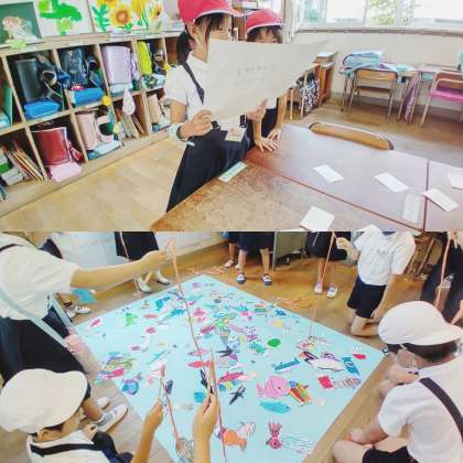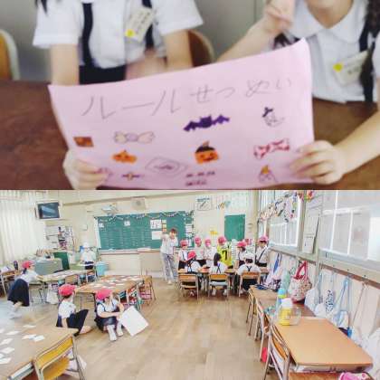 1年生は、初めての片江フェスタです。初めてのお店番や、お客さんとしていきます。元気グループの縦割りで回ります。6年生がしっかりと1年生の手をつないで回っていました。
