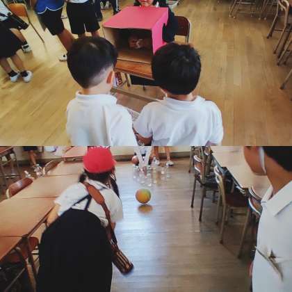 クラスごとに、お店を出しています。どのクラスも楽しそうです。