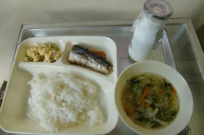 さんまのさんしょう焼き・すまし汁・高野どうふの卵とじ・ご飯・牛乳