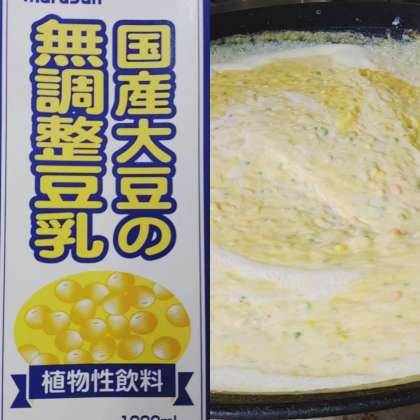 「豆乳コーンクリームシチュー[米粉]」は、小麦アレルギーのある児童も食べることができるように、小麦粉を使った手作りルウの代わりに、水どきの上新粉で とろみをつけます。また昨年度同様牛乳アレルギーのある児童が食べることができるように、豆乳 を使用 しています。