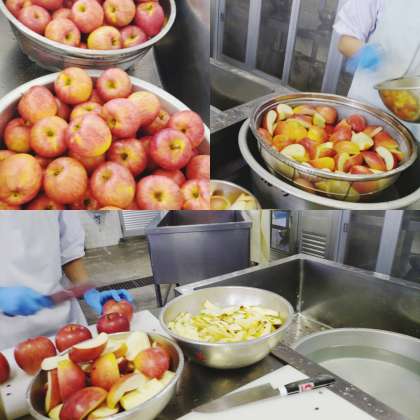 「りんご」は 1人1/4切れずつです。