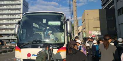 出発式です。穏やかな天気の中、6年生が出発しました。