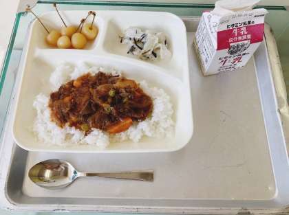ハヤシライス[米粉]・キャベツのひじきドレッシング・さくらんぼ(缶)