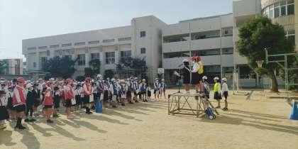 じゃんけんをして、勝ったら進み相手の陣地まで行くゲームをしました。