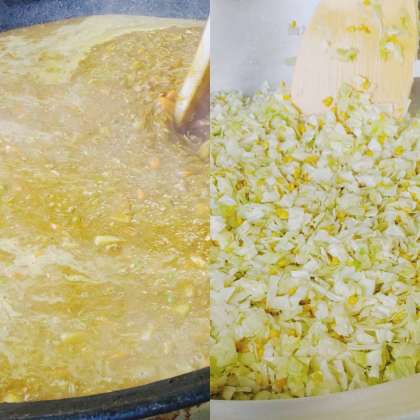 「サワーソテー」は、キャベツと コーンをいため、砂糖、塩、ワインビネガー、うすくちしょうゆで味つけします。