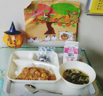 ピリ辛丼・中華スープ・ミニフィッシュ