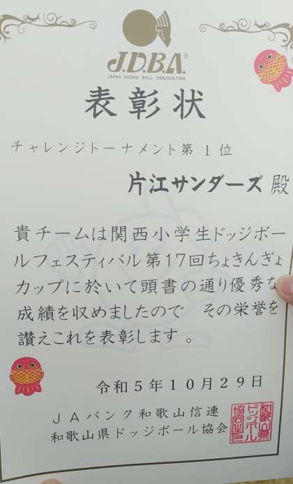 JAバンク和歌山信連・和歌山県ドッチボールチーム協会主催の関西小学校ドッチボールフェスティバル第17回ちょきんぎょカップにおいて優秀な成績でした。