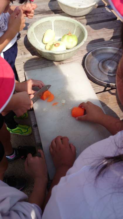 みんなお腹が空いています。美味しいカレーを作ろうと一所懸命です。