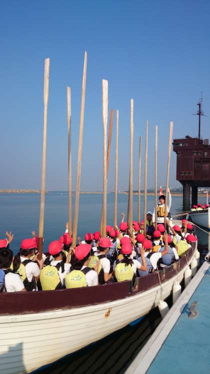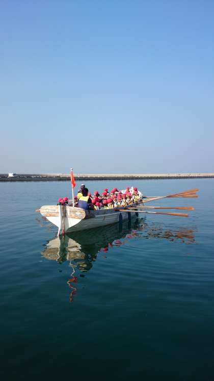 オールを漕ぐのに、力と気持ちを合わせます。さあ、できるかな?