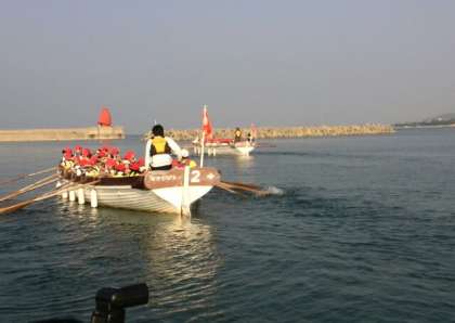 子どもたちはなかなか上手に漕いでいます。どんどん沖へと進みます。