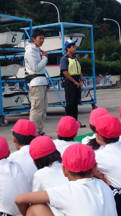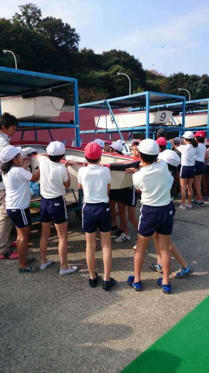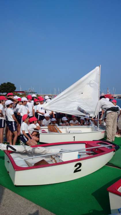 さあ、いよいよヨットに乗ります。係りの方や、大学生のボランティアの方も教えてくださいます。みんなドキドキ!風がとても涼しく気持ちが良いです。