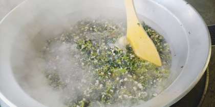 「こまつなの煮びたし」は、鶏肉(極小)と旬のこまつなを使用しています。
