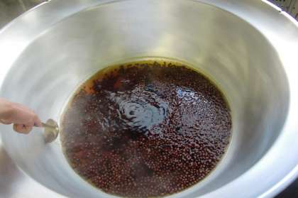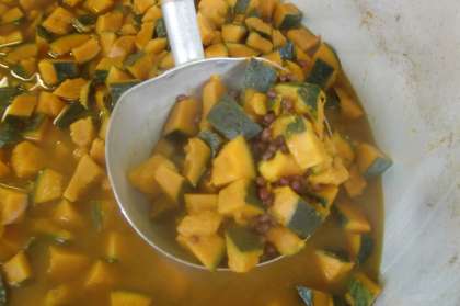 写真2枚目は、小豆を煮ているところ、3枚目はかぼちゃと合わせて煮含めているところです。